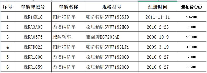 中行南陽(yáng)分行車(chē)輛拍賣(mài)公告